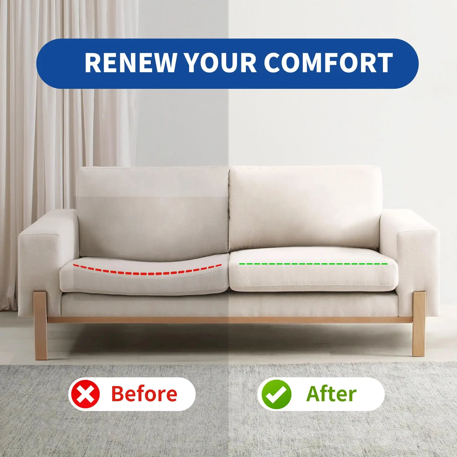 Sofa a New Look: Seat cushion sag repair for sagging seat can effectively repair and fix your sagging furniture cushions, easily and quickly, give your sofa a new look!