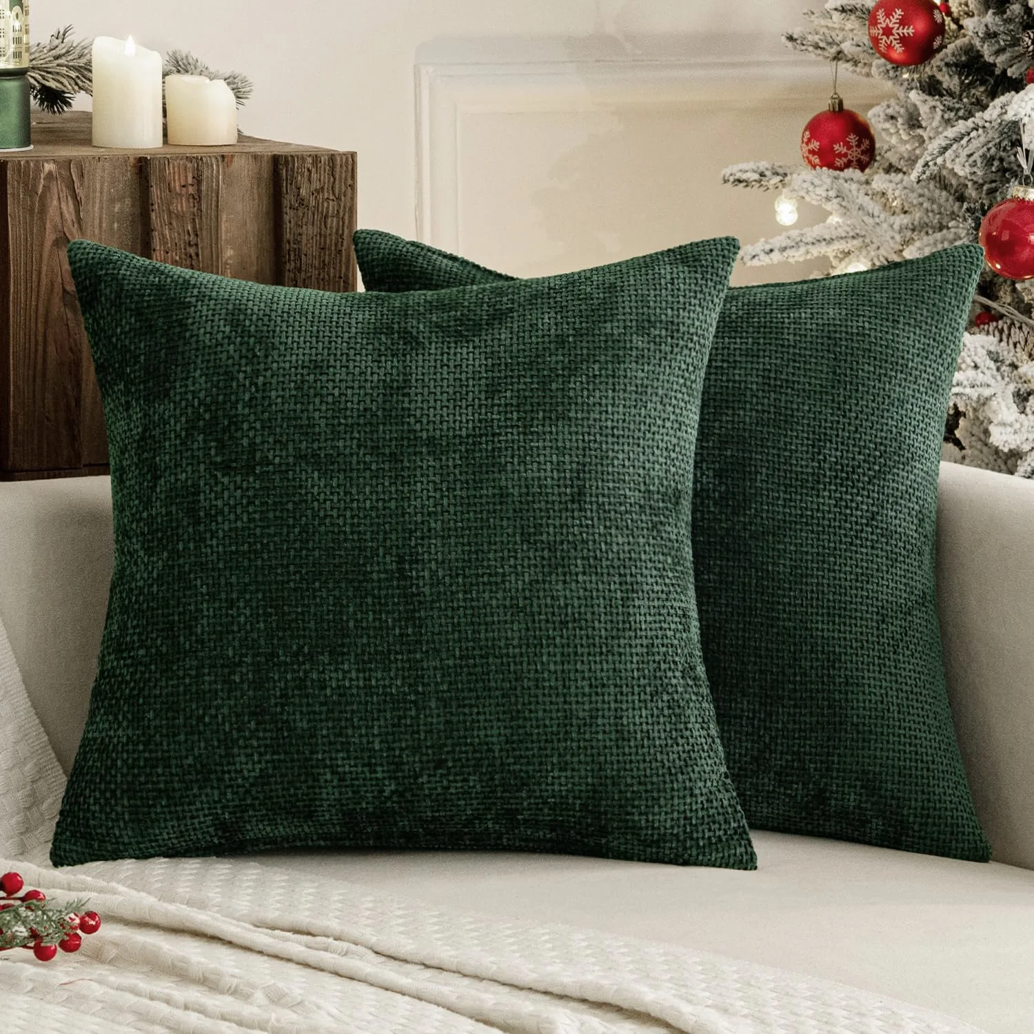 - 18×18 Inch Chenille Throw Pillow Covers Luxury Soft Cushion Case for Home Couch Bed Living Room Spring Farmhouse Decor