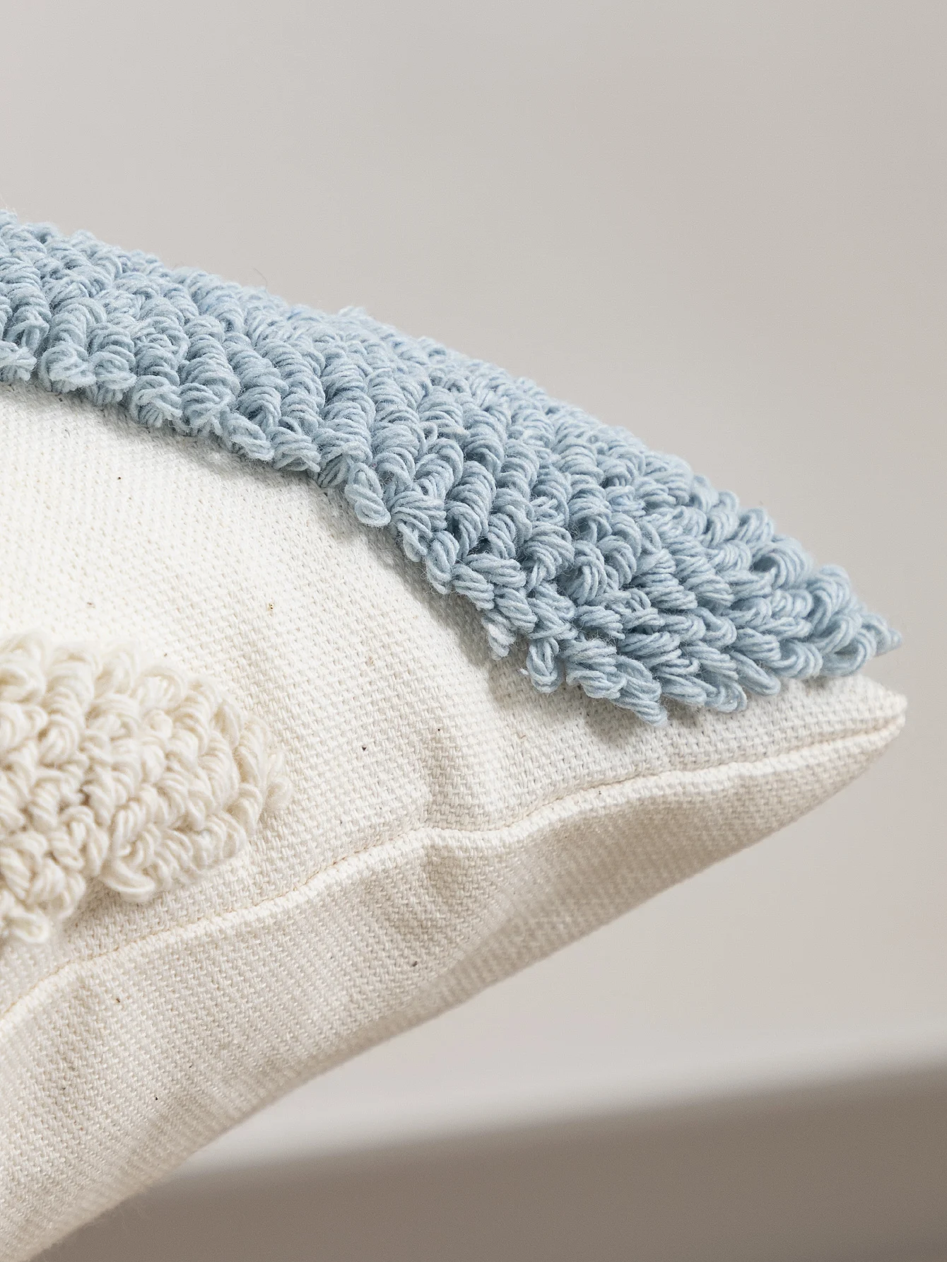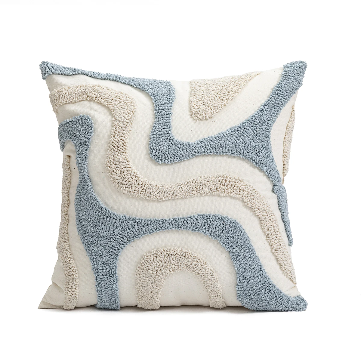 - 1pc Blue and white irregular geometric pattern loop velvet pillowcase in Bohemian style suitable for living room, bedroom, sofa