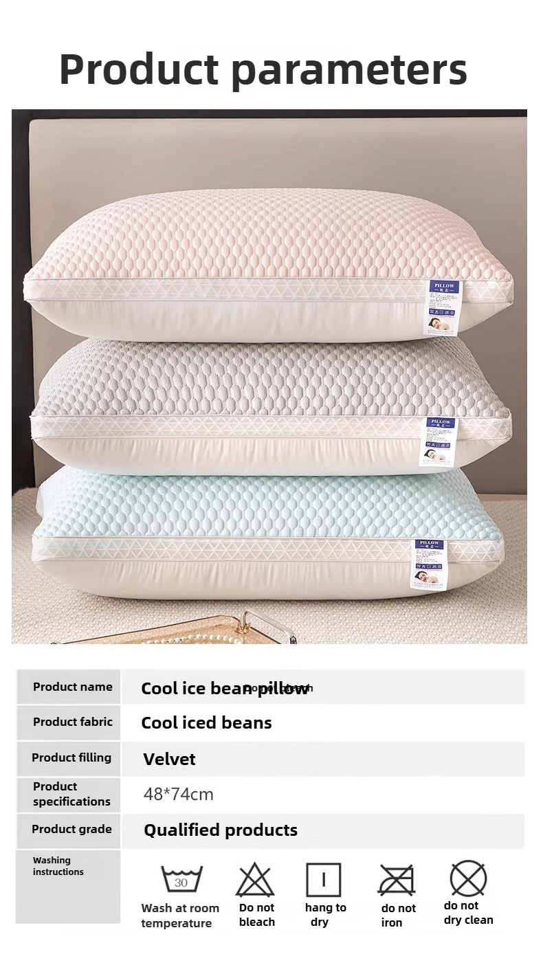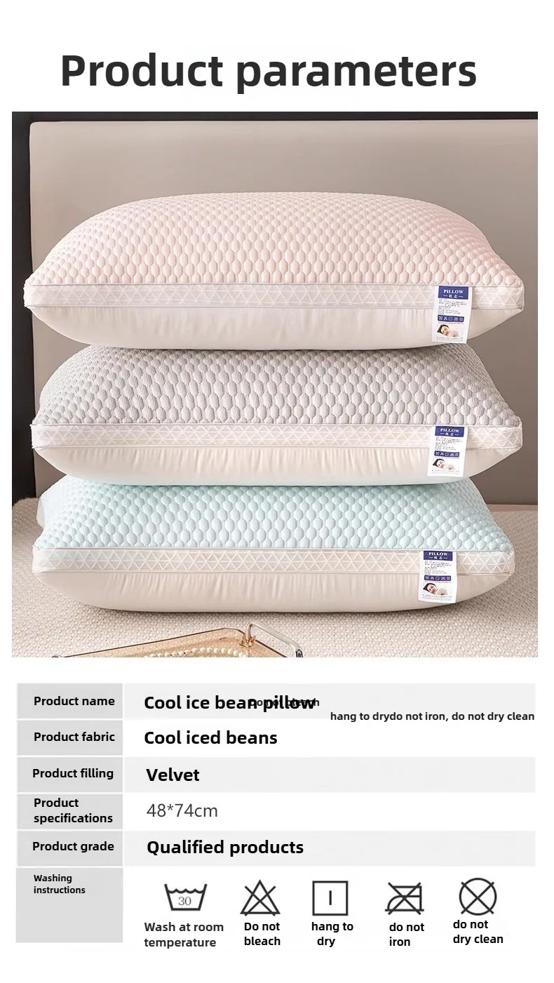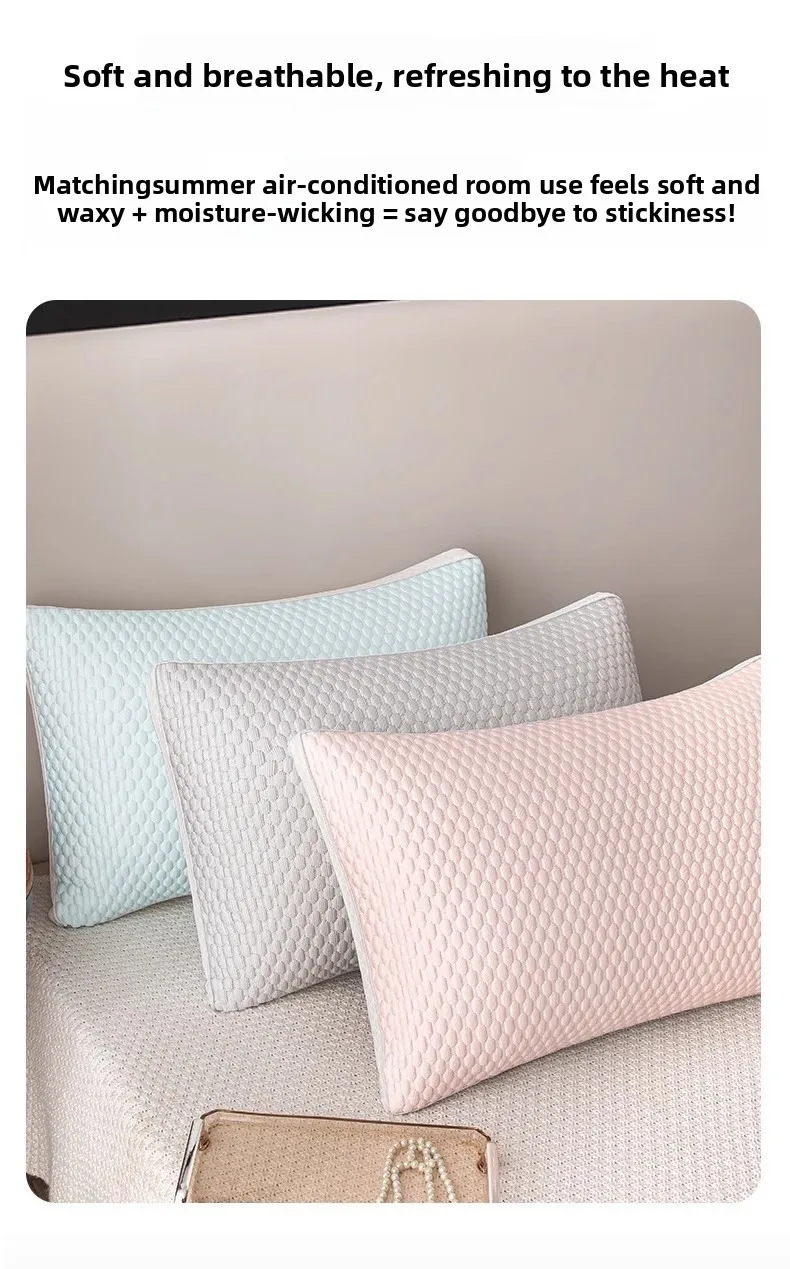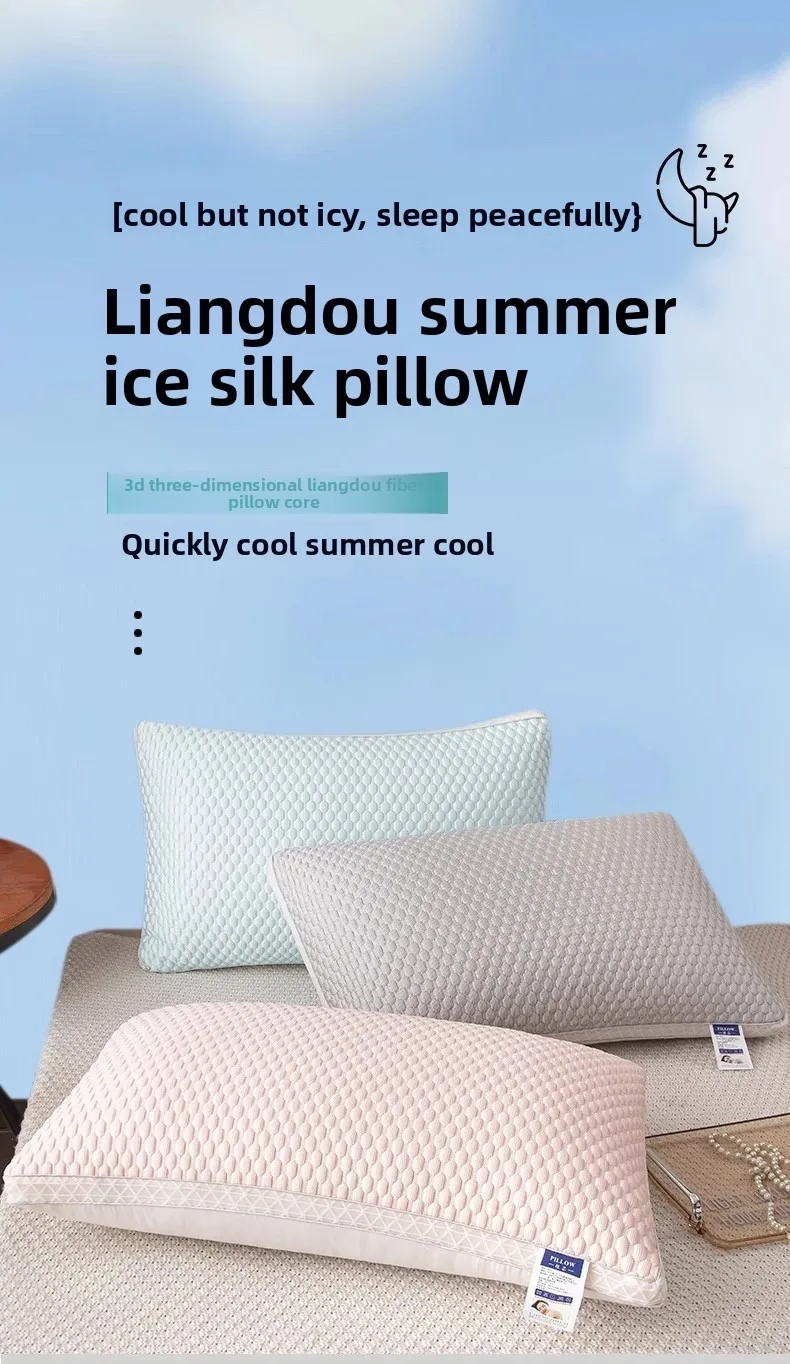 - 1PC Summer Cooling Ice Silk Pillow Breathable Mesh Edges 3D Ergonomic Cervical Support Pillow Core for Home Hotel 2025 New