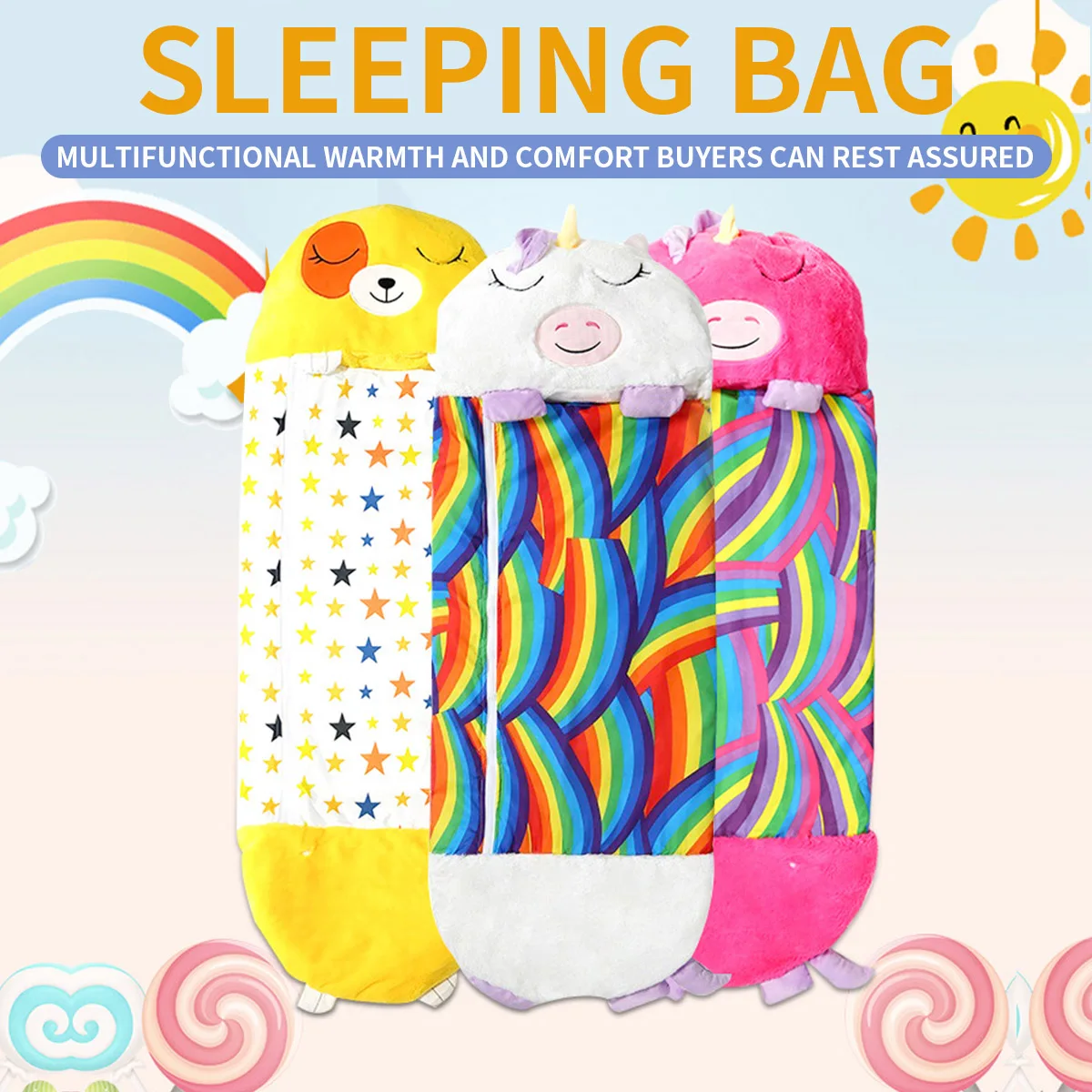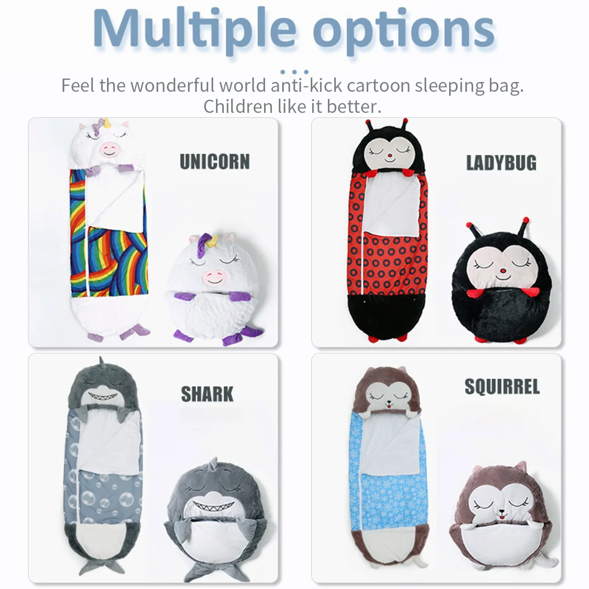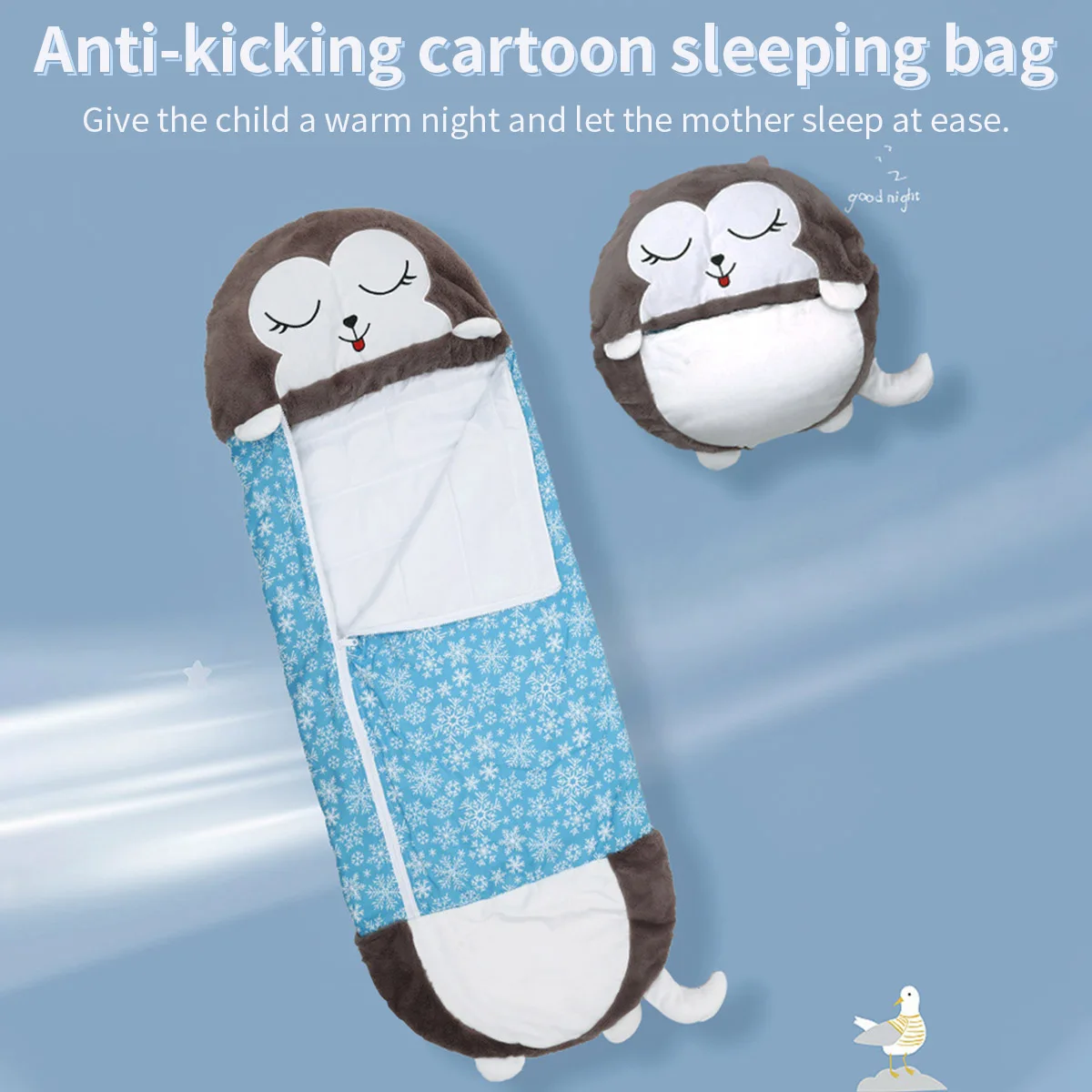 Children's Cartoon Sleeping Bag with Pillow for Birthday Gift Kids Comfy Plush Warm Sleepy Sack Animal Boys Girls Soft Sleepsack