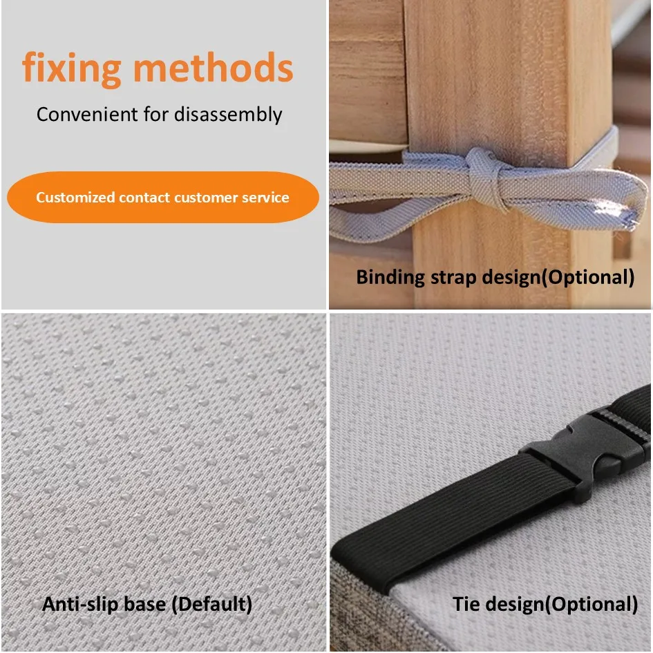 Choose from adjustable straps, buckles, or a non-slip base to keep your cushion firmly in place. Default option:Non-slip base only (if no selection is made).
