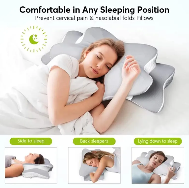 - Neck Cervical Pillow for Pain Relief Memory Foam Pillows Sleeping Ergonomic Cooling Side Back Stomach Sleepers