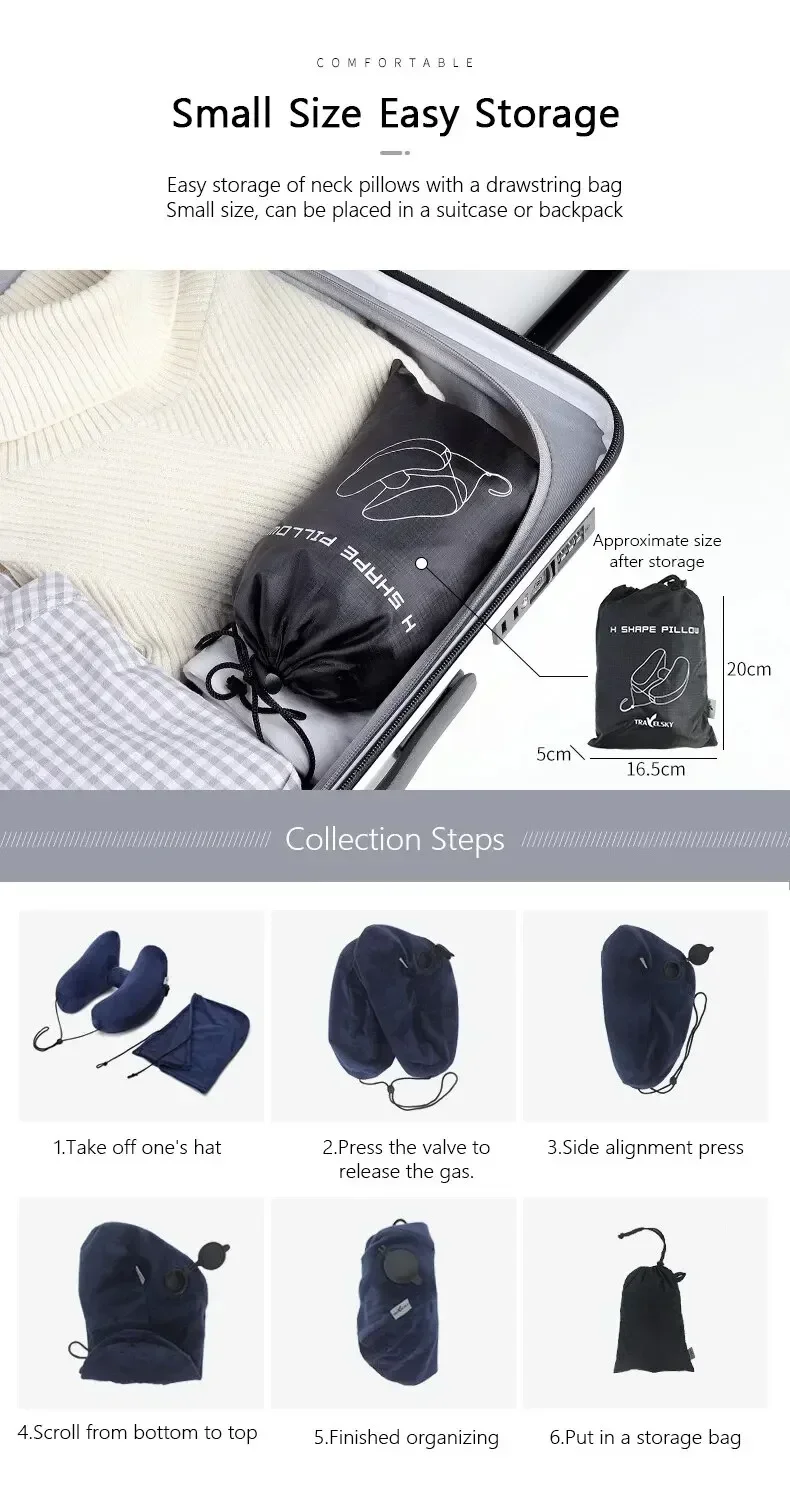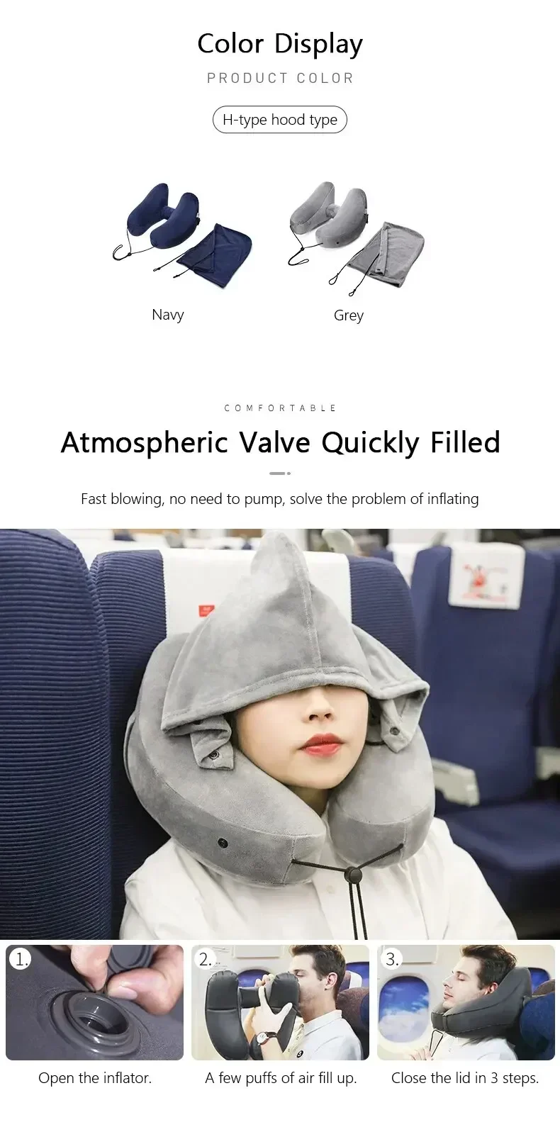 - Neck Pillow Travel U-shaped Pillow Inflatable H Hooded Nap Outdoor Car Long-Distance Aircraft