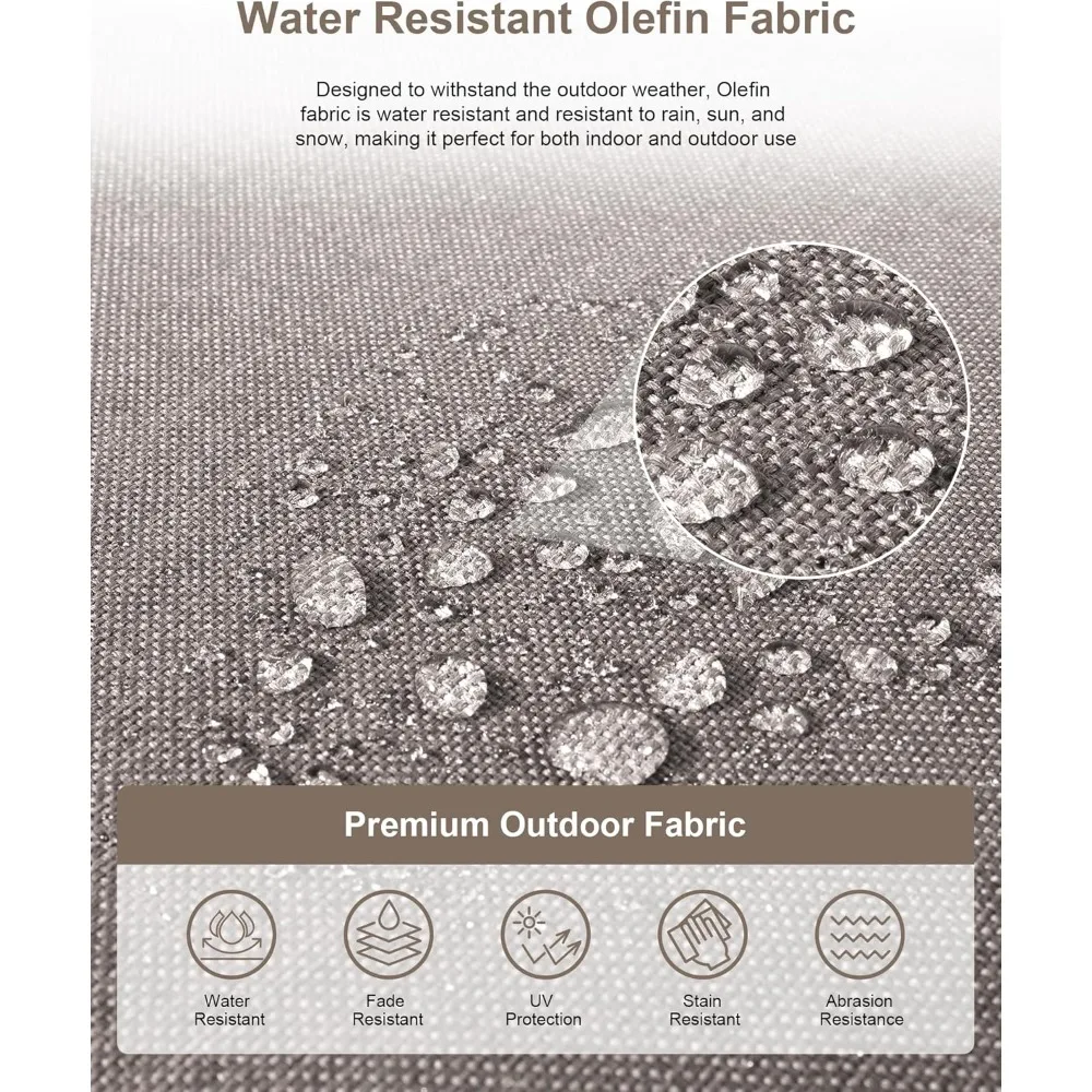 - High-Performance Fabric for Outdoor Cushions: Our outdoor seat cushions are made with high-quality Olefin fabric, offering excellent water resistance, fade protection, UV resistance, and stain resistance. The durable fabric is also highly wear-resistant, ensuring long-lasting use. Additionally, the fabric is breathable and skin-friendly, making it perfect for outdoor use in varying weather conditions, ensuring both comfort and durability throughout the seasons.