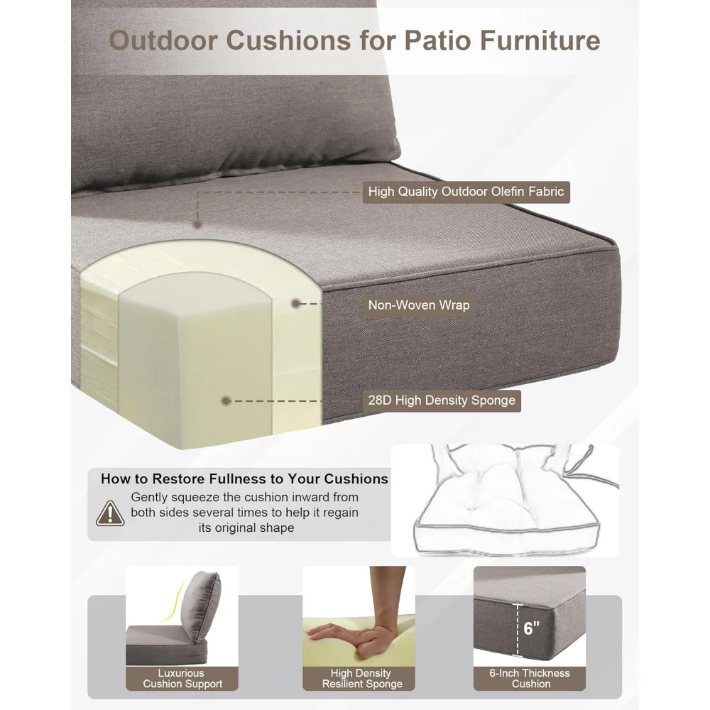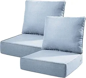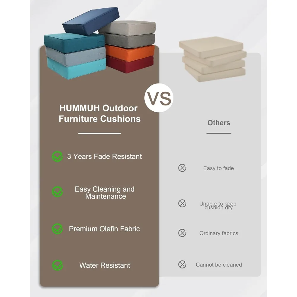- Cushion Protection Design for Water and Fade Resistance: Our outdoor cushions for patio furniture are crafted from high-quality outdoor olefin fabric. The fabric surface is treated to be both water resistant and fade-resistant. A non-woven wrap layer is added inside, with a double-layer waterproof design on both the front and back, providing extra protection for your furniture. With a colorfastness rating of 4, outdoor furniture cushions are designed to resist fading for up to 3 year.