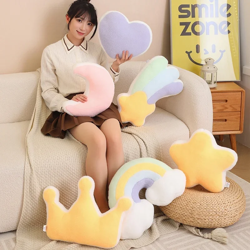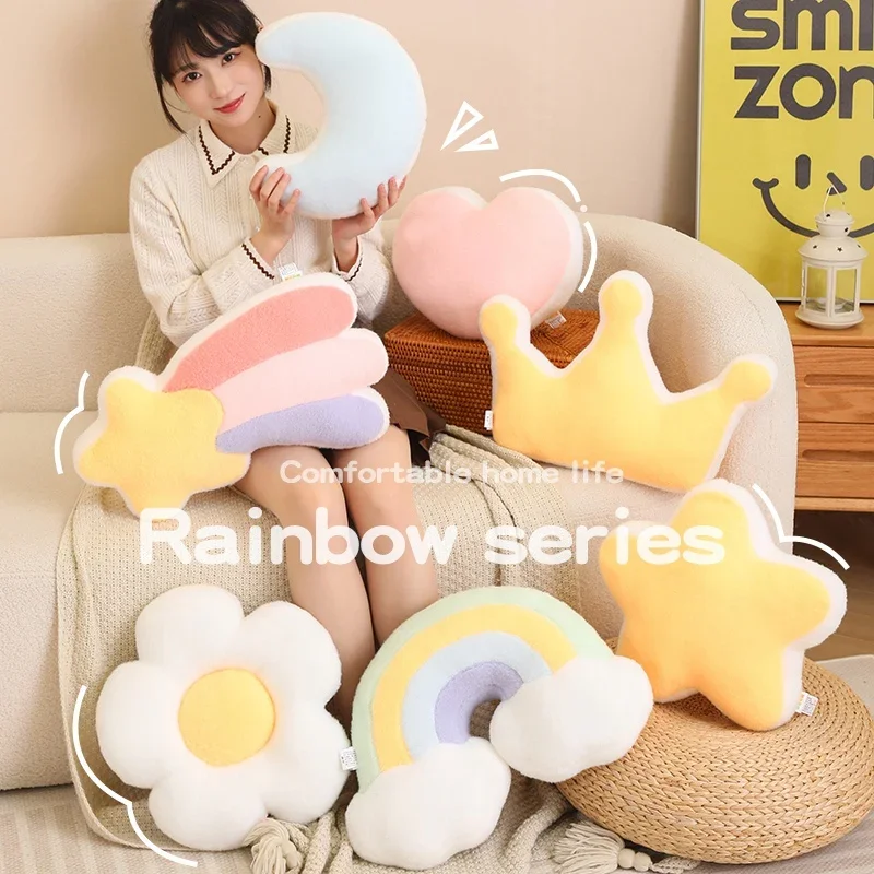 - Rainbow Wish Star Moon Plush Pillow Colorful Crown Cloud Soft Toy Pillow Cushion Sofa Home Decoration Throw Pillows