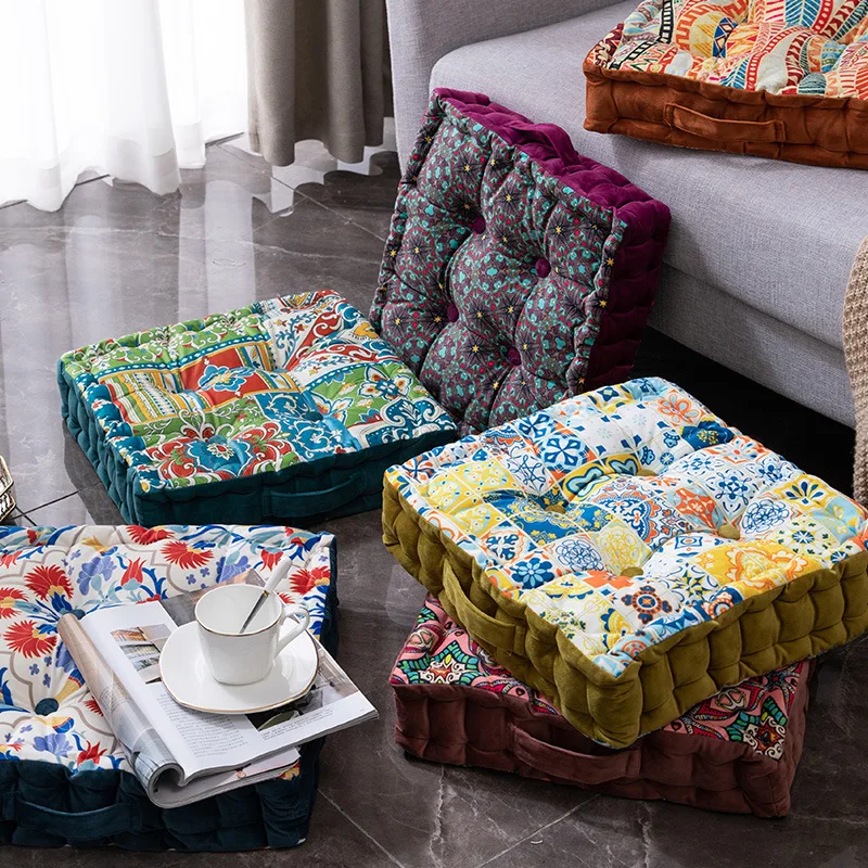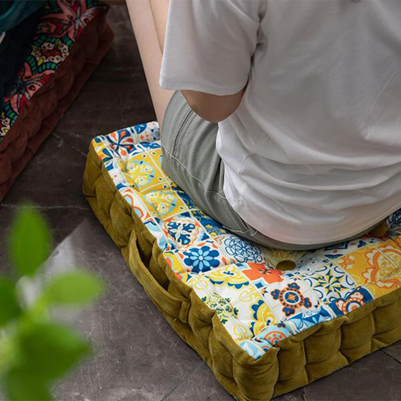 - Thicken Square Cushion 45x45cm Vintage Handle Soft Floor Cushion Pillows Tatami Seat Office Chair Cushion Meditation Yoga Mat